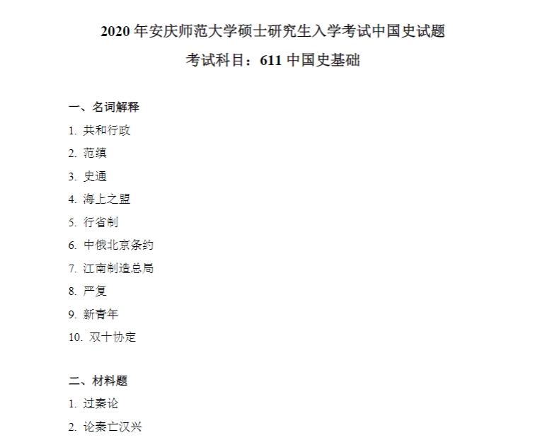 安庆师范大学《611中国史基础》备考核心是“理清脉络、夯实史实、对接考纲、强化应用”。首先明确核心复习资料,优先吃透指定教材(通常为朱绍侯《中国古代史》、李侃《中国近代史》、王桧林《中国现代史》),结合院校最新考纲梳理章节范围,剔除超纲内容,搭建“先秦至明清—近代转型—现代发展”的时间轴框架,标记各阶段核心节点(如制度变革、经济发展、民族关系、思想演变),避免史实碎片化。