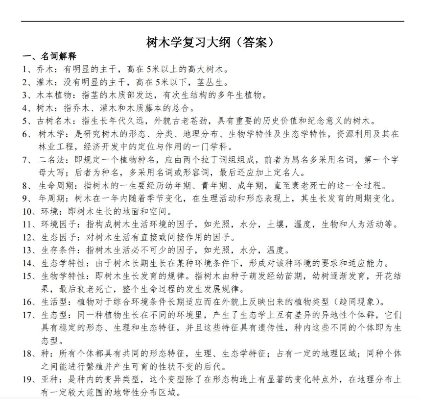 第五,结合“北方地域特色”和“资源利用”。 注意教材中对我国北方森林林区(东北、华北、蒙新)建群种和特有种的侧重(如红松、白桦、蒙古栎、侧柏)。同时,了解各树种的资源利用价值(用材、药用、观赏、生态防护),这是简答题和论述题的常见出题方向。