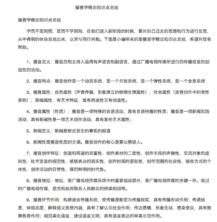 《播音学概论》专业课备考核心是掌握播音主持的核心理论、创作规律与实践规范,兼顾理论记忆、逻辑理解与应用分析能力,需围绕“基础筑牢-核心突破-案例应用-冲刺复盘”的逻辑构建备考体系。以下是针对性的500字原创备考方案,助力高效突破考点、提升应试能力。