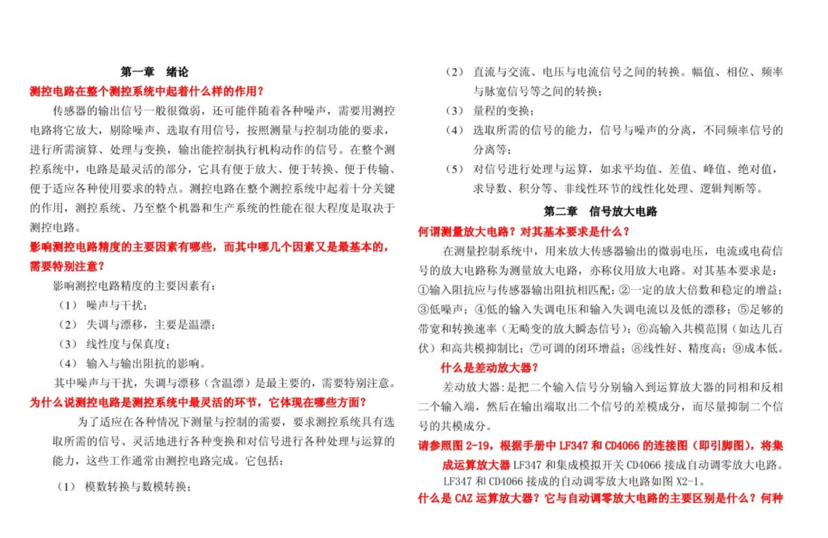首先,深耕教材核心,搭建知识体系。以指定教材为根本,梳理四大核心模块:一是基础电路原理,重点掌握放大电路、滤波电路、调制解调电路的工作机制,吃透运算放大器、比较器等核心器件的选型与应用,牢记关键参数计算公式;二是测控功能模块,理解传感器接口电路、信号调理模块、数据采集模块的设计逻辑,明确各模块的衔接要点;三是设计方法,掌握电路方案选型、参数计算、PCB绘制的基本流程,建立“需求分析-方案设计-参数验证”的闭环思路;四是抗干扰技术,牢记电磁兼容、接地、屏蔽等抗干扰措施,理解噪声来源与抑制原理。