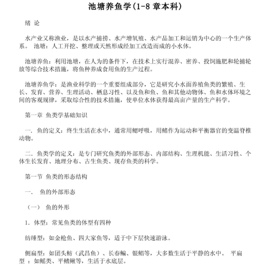 首先,深耕教材核心,筑牢知识框架。以指定教材为根本,梳理四大核心模块:一是池塘环境,重点掌握池塘水质指标(溶解氧、pH值等)、水体生态结构,吃透水质调控的原理与关键方法;二是品种特性,牢记常见养殖鱼类(草、鲢、鳙、鲤等)的生活习性、食性特点及适宜生长条件,明确混养搭配的核心逻辑;三是养殖技术,熟练掌握苗种培育、合理密养、投喂管理、日常巡塘等关键技术,理解各环节对养殖效益的影响;四是病害防控,掌握鱼类常见病害(病毒性、细菌性、寄生虫病)的识别特征、发病诱因及综合防控措施,形成“环境-品种-技术-防控”的闭环认知。