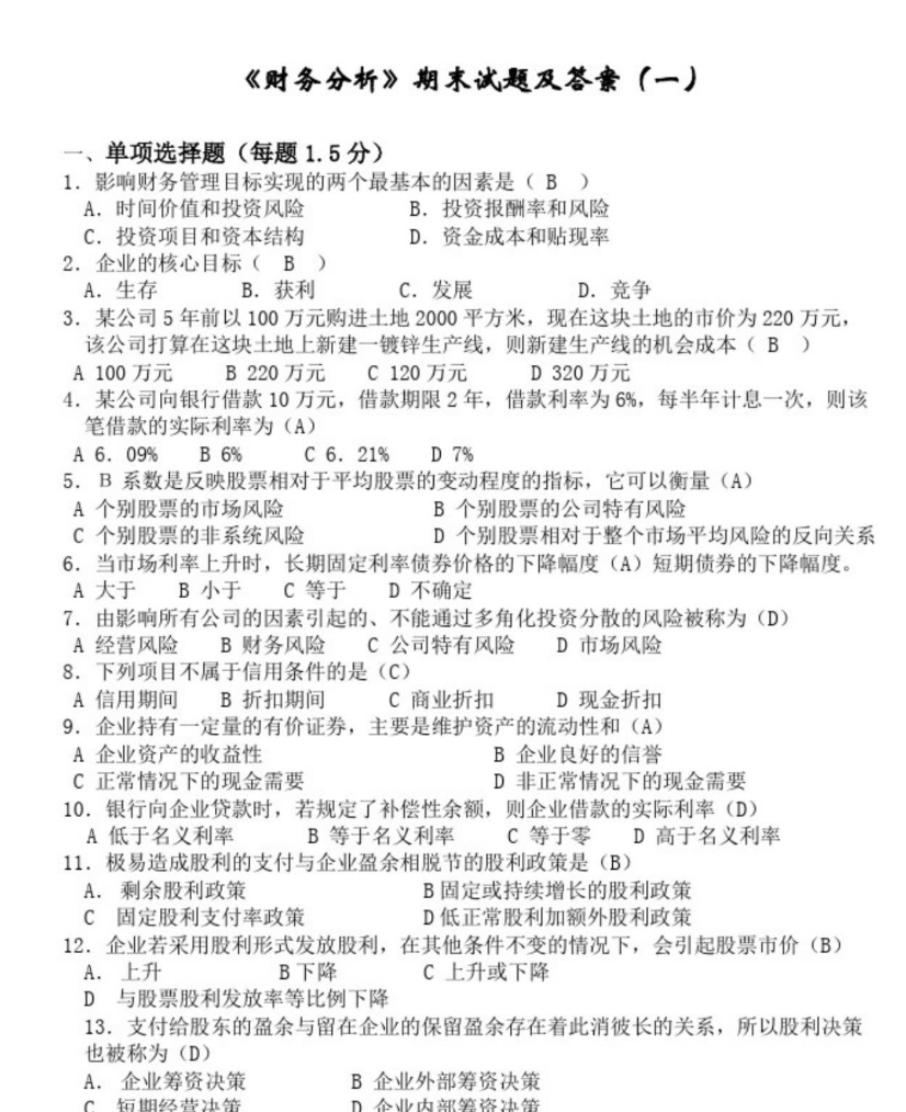 其次,精研自考真题,强化答题逻辑。收集近年自考真题,明确题型分布(名词解释、单选、计算、综合分析题),综合分析题是得分关键,常考查多维度研判企业财务状况、经营成果及发展潜力。总结答题范式:计算题列明公式、分步演算,标注指标核心意义;综合分析题结合报表数据、行业背景、战略规划,解读指标异常成因,兼顾优势、风险与非财务因素影响,给出具备可行性的结论与建议。