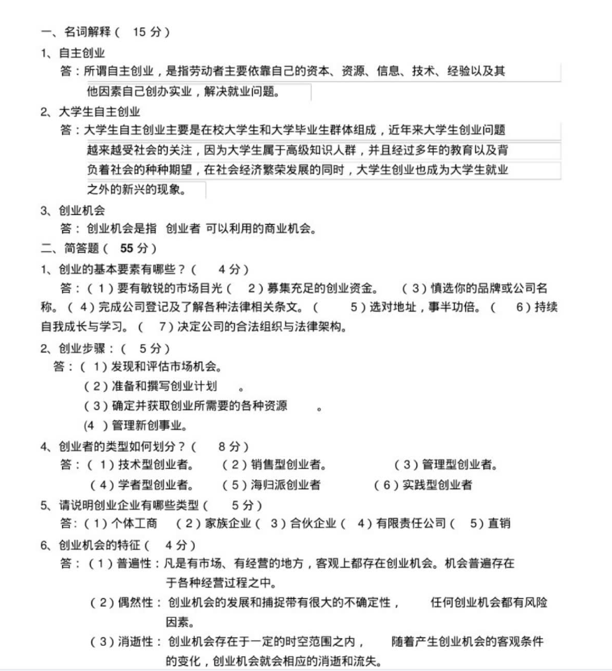 其次,精研案例真题,强化答题逻辑。结合教材案例、历年真题及行业热点案例,明确题型分布(概念辨析、简答题、案例分析、商业计划书设计),案例分析与实操题是得分关键。总结答题范式:案例题按“理论锚定-案例拆解-问题分析-解决方案”展开,凸显理论与实践结合;简答题聚焦“概念阐释+核心要点+逻辑梳理”,贴合阅卷采分点;商业计划书侧重“可行性分析+模式设计+运营规划”,确保逻辑闭环与实操性。