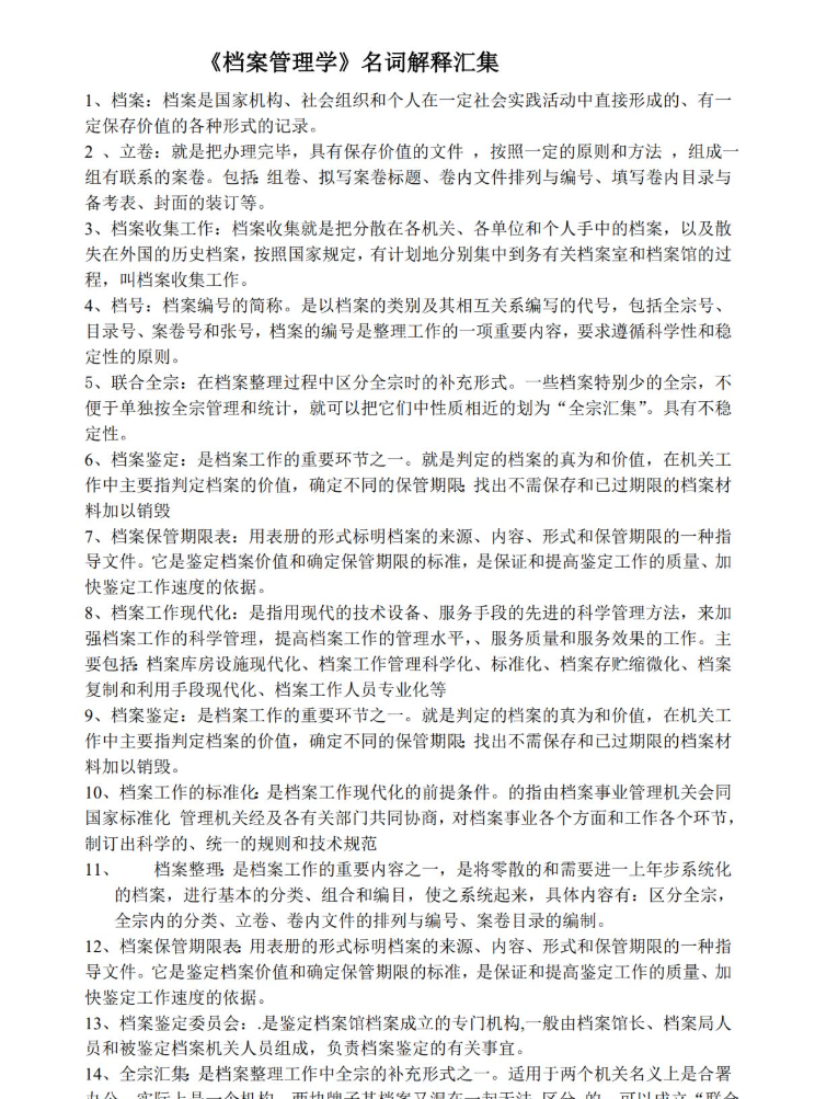首先,深耕核心基础,筑牢知识根基。聚焦三大重点:一是吃透基础概念,熟练掌握档案的定义、属性、价值、分类标准,厘清档案与文书、资料的边界,牢记核心术语的精准表述;二是掌握核心业务流程,精准梳理档案收集、整理、鉴定、保管、统计、利用六大环节的操作要点、流程逻辑及相互衔接关系;三是夯实法规规范,熟记《中华人民共和国档案法》及行业配套标准,明确不同类型档案(文书、科技、声像等)的管理规范,构建“概念-流程-规范”的闭环知识框架。