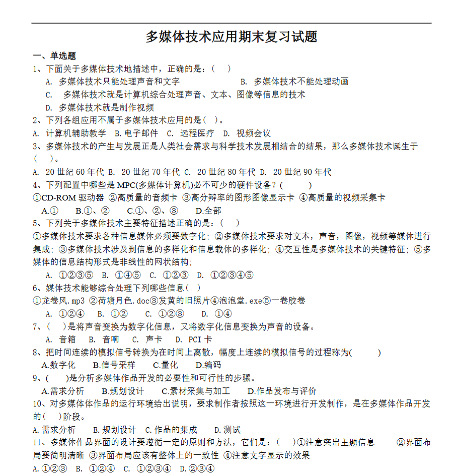 首先,夯实技术基础,构建知识体系。聚焦三大重点:一是吃透基础理论,熟练掌握多媒体定义、文本、图像、音频、视频四大核心元素特性,牢记编码解码、数据压缩等关键原理;二是攻坚核心技术,梳理多媒体存储、传输及同步技术的应用逻辑,厘清不同格式的适配场景;三是衔接软件实操,掌握PS、PR、Flash等主流工具的核心功能,搭建“理论-技术-软件”闭环框架。