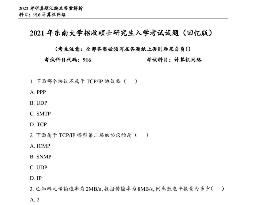 备考东南大学《916计算机网络》需立足院校考纲核心,紧扣“理论吃透、协议深挖、真题攻坚”的核心逻辑,精准匹配其侧重网络分层原理、协议细节与工程应用结合的命题特点。核心备考资料优先锁定指定教材,推荐谢希仁《计算机网络》(第八版),搭配东南大学本科讲义、考纲解析及近10年真题,明确OSI/RM与TCP/IP协议栈、物理层、数据链路层、网络层、传输层、应用层等核心模块,梳理“分层原理-协议机制-数据传输流程”的内在关联主线,避免复习碎片化。