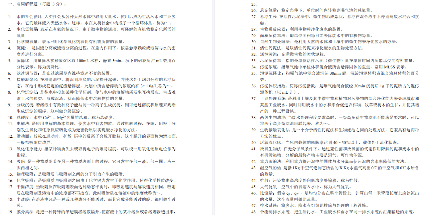 高廷耀教材有官方配套的《笔记和课后习题(含考研真题)详解》,这是备考的核心利器。务必做到:先独立完成课后计算题(如曝气池容积、剩余污泥量、沉淀池尺寸),再对照答案修正思路。部分院校(如广东工业大学)的试卷最后会有一道工艺流程设计题,需要根据污水水质设计达标排放路线,这要求将所学知识全部串联起来。