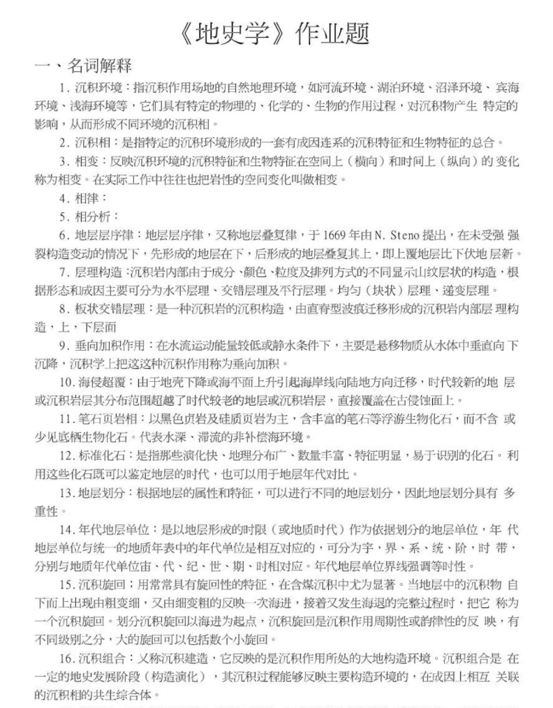 其次,精研题型规律,强化答题逻辑。结合教材习题、历年真题,明确题型分布(名词解释、简答题、论述题、地层演化分析题),论述题与地层演化分析题是得分关键。总结答题范式:名词解释需“年代/地层属性+核心特征+地史意义”,精准规范;简答题分点梳理,兼顾时空逻辑与因果关联;分析题紧扣“年代定位-地层解析-演化推断”,聚焦典型区域地史案例,适配评分对时空思维与实证分析能力的要求。