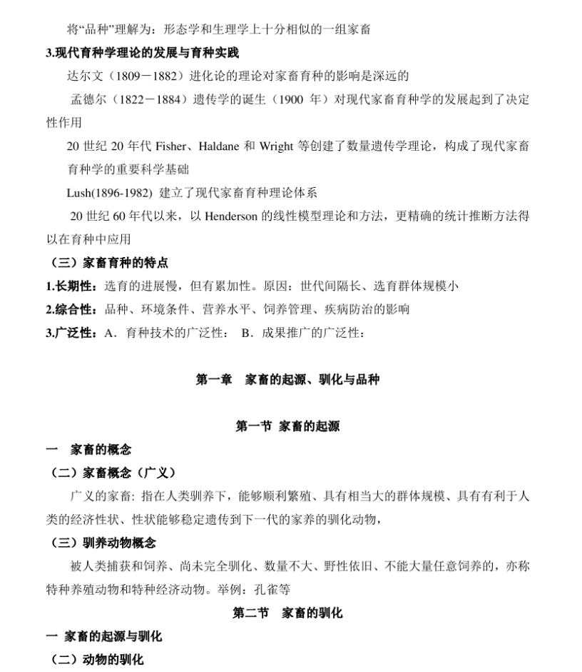 其次,精研题型规律,强化答题逻辑。结合教材习题、历年真题,明确题型分布(选择题、填空题、简答题、计算题、论述题),育种方法对比、遗传参数计算、育种方案设计是得分关键。答题范式:名词解释精准说明育种方法或概念的核心内涵;计算题紧扣公式,分步推导遗传参数与选择响应;论述题结合畜禽实例,设计育种方案并分析可行性,适配课程实操性评分标准。