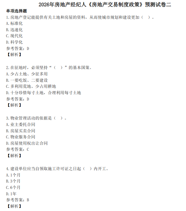 最后,聚焦高频考点做冲刺。政策的重点章节很明确,转让、预售、登记、税费、公积金这几块,冲刺阶段把这些考点的细节背熟,比如预售的条件、税费的减免政策,再做 2-3 套模拟题练手感,就能稳稳通关。