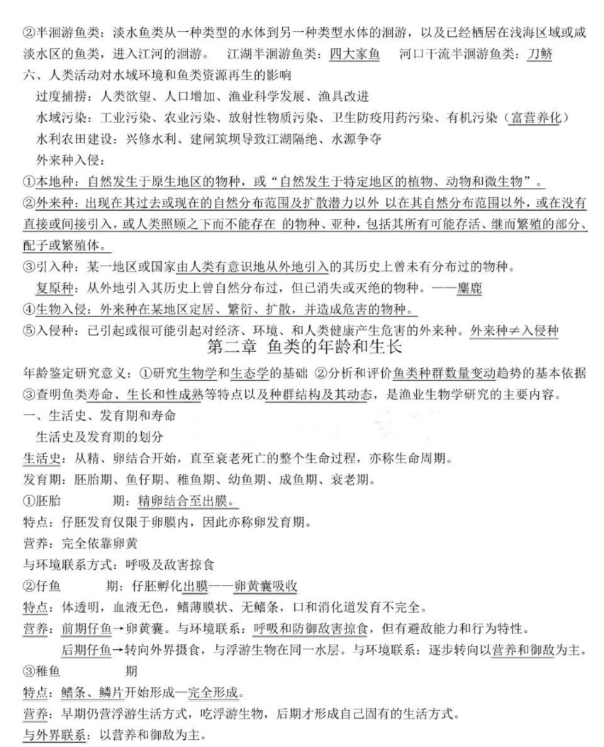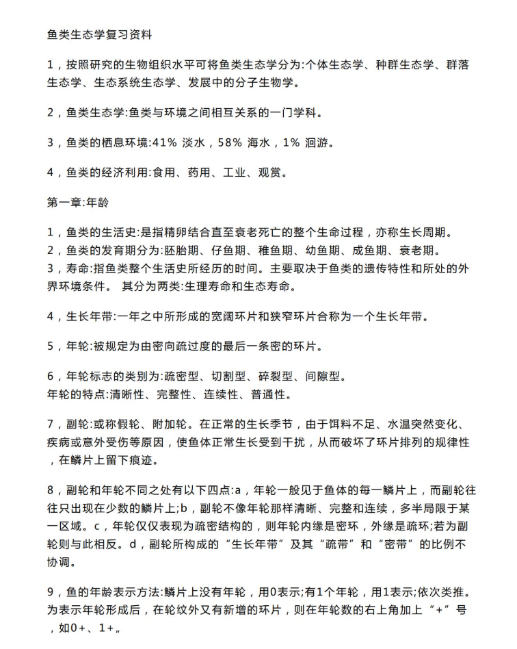 第二,死磕“年龄与生长”和“环境因子”两章。 这是暨大最爱考的难点。比如鳞片上的“年轮”和“副轮”怎么区分?溶氧、水温、盐度这些非生物因子具体怎么影响鱼的生长?考试经常给你一个渔获物的年龄金字塔,让你分析捕捞强度合不合理。这种题光背书没用,得懂原理,建议自己动手推导一下公式,比如丰满度K=100(W/L^3),理解了就不用死记。