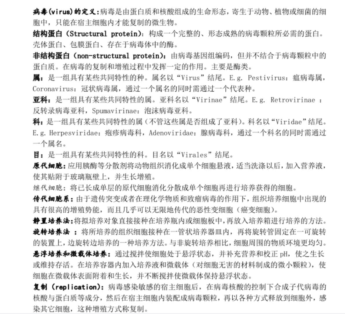 首先,吃透核心基础,筑牢知识根基。聚焦三大重点:一是掌握病毒基础特性,熟练理解病毒的定义、结构(核酸、衣壳、囊膜)、化学组成及基本特征,牢记病毒与其他微生物的本质区别;二是攻坚核心机制,精准掌握病毒复制的全流程(吸附、侵入、脱壳、生物合成、装配释放),厘清不同类型病毒(DNA病毒、RNA病毒)复制的关键差异;三是衔接分类与致病,掌握教材病毒分类体系,理解病毒致病性与毒力因子、宿主免疫应答的关联,构建“基础-机制-致病”的闭环框架。