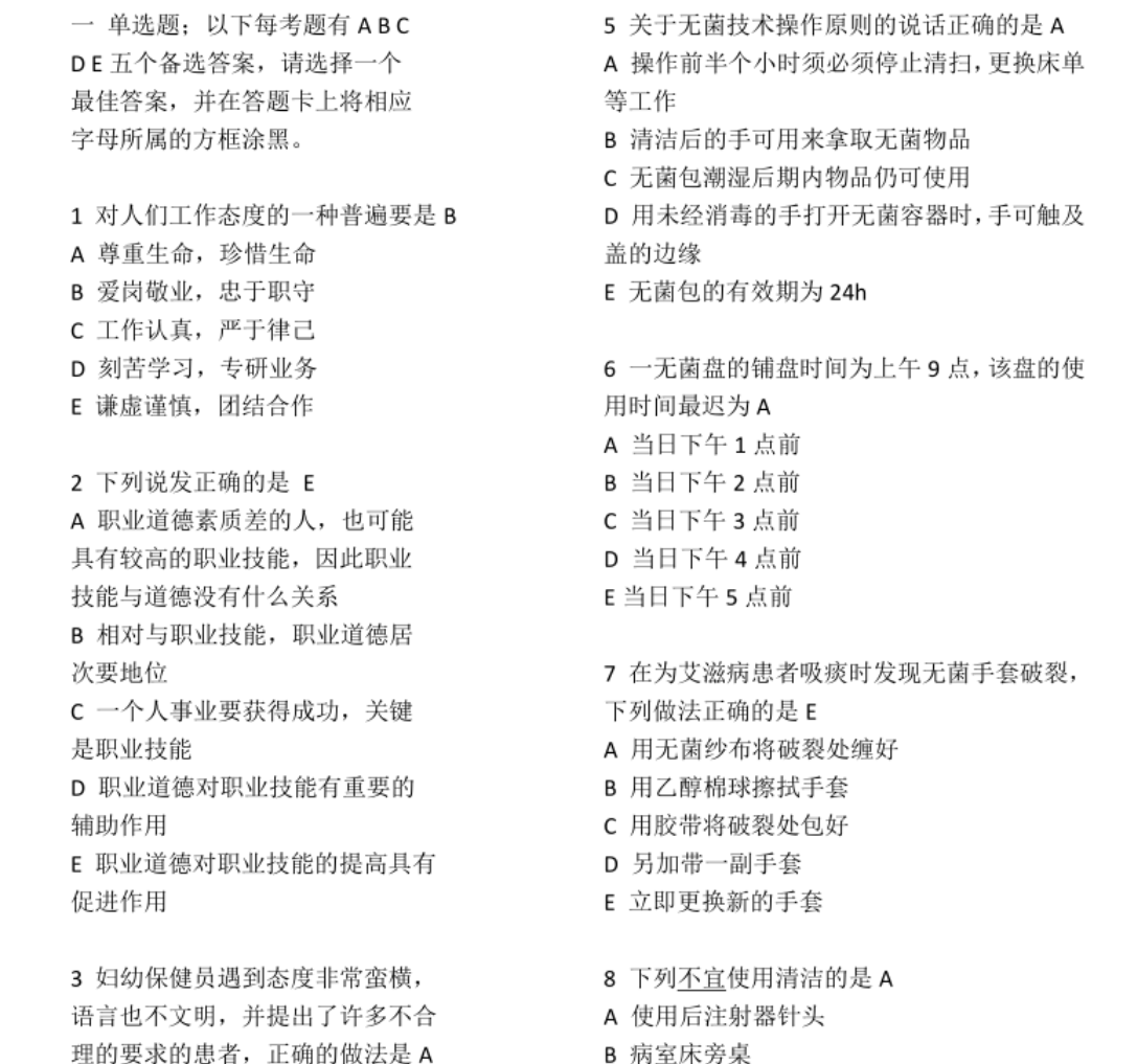 其次,精研题型规律,适配岗位考核。结合职业考试真题、岗位实操题库,明确考核形式(选择题、判断题、实操题、案例分析题),实操流程、规范执行、问题处理是得分核心。答题范式:选择/判断题聚焦基础常识、操作禁忌与规范要点,确保记忆精准;实操题严格按岗位流程执行,动作标准、步骤完整、注重细节;案例分析题围绕基层常见场景,按“问题识别-实操处理-健康指导”流程作答,贴合岗位服务实际。