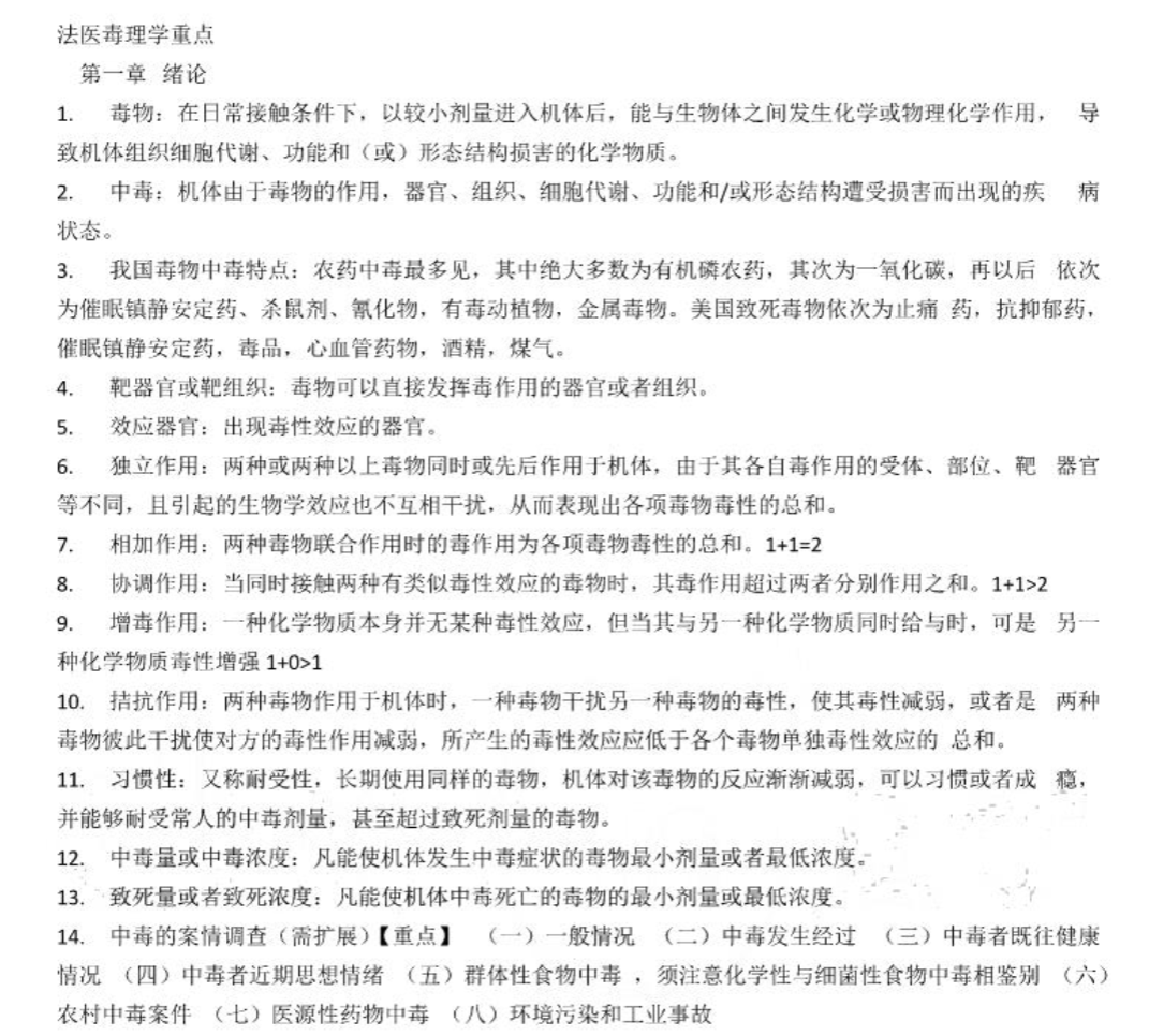 最后,突破核心难点,提升应用能力。针对高频难点(毒物种类混淆、代谢路径模糊、检测方案不规范),整理毒物分类清单、代谢路径图谱、检测方法手册,结合案例反复复盘;重点攻克相似毒物中毒鉴别、代谢产物检测、中毒时间推断等易失分点。通过“毒物记忆-机理推演-检测实操”的闭环训练,提升中毒诊断与检测规范能力,适配法医毒理实务需求。