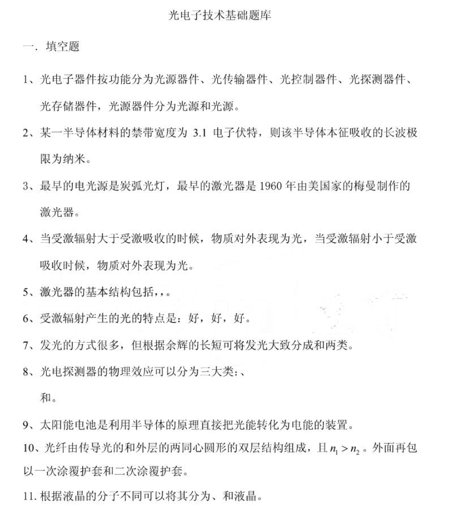 - 器件结构原理图分析: 激光器谐振腔结构如何选择模间距?液晶显示器液晶盒间的电极形状决定了什么驱动方式?实战题多涉及观察器件原理图判断技术细节的能力。