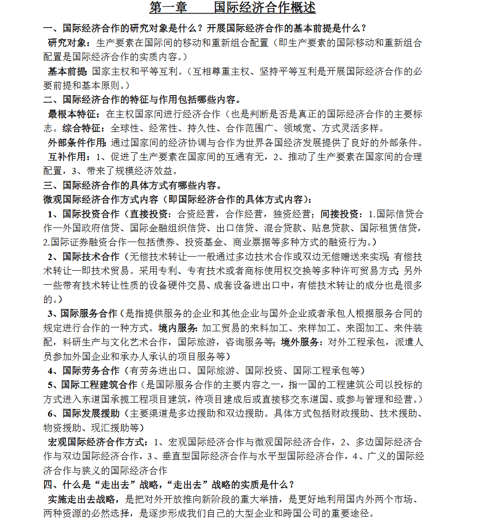 • 动因与理论(为什么合作):理解各方参与的动机。例如,企业进行FDI是为了市场、资源还是效率?国家参与区域一体化是为了贸易创造还是政治安全?掌握主流理论(如垄断优势理论、国际生产折衷理论)的核心观点即可。