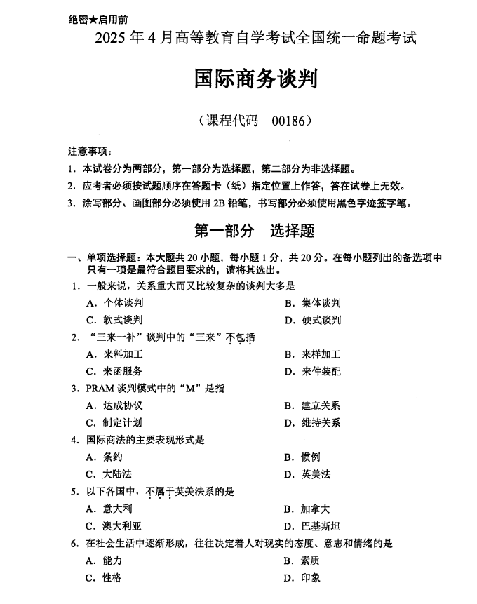 其次,精研自考真题,强化答题逻辑。收集近年自考真题,明确题型分布(单选、多选、简答、案例分析题),其中案例分析题是得分核心,常结合跨境贸易、合资合作等场景考查。总结答题范式:简答题分点提炼核心要点,结合理论内涵补充说明;案例分析题需先定位谈判阶段与核心问题,再匹配对应策略,结合跨文化因素给出解决方案,规范使用专业术语,通过真题模拟把控答题时长。