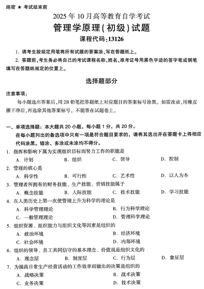 自考《管理学原理(初级)》是管理类专业的基础课程,系统掌握备考方法能事半功倍。以下为原创备考建议: