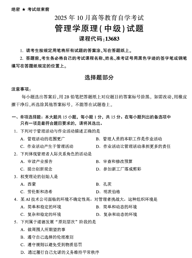 备考过程中保持积极心态很重要。管理学原理的知识体系具有内在逻辑性,只要方法得当、持之以恒,完全能够掌握这门课程的核心内容,顺利通过考试。记住,理解胜过死记硬背,系统学习优于碎片化记忆。