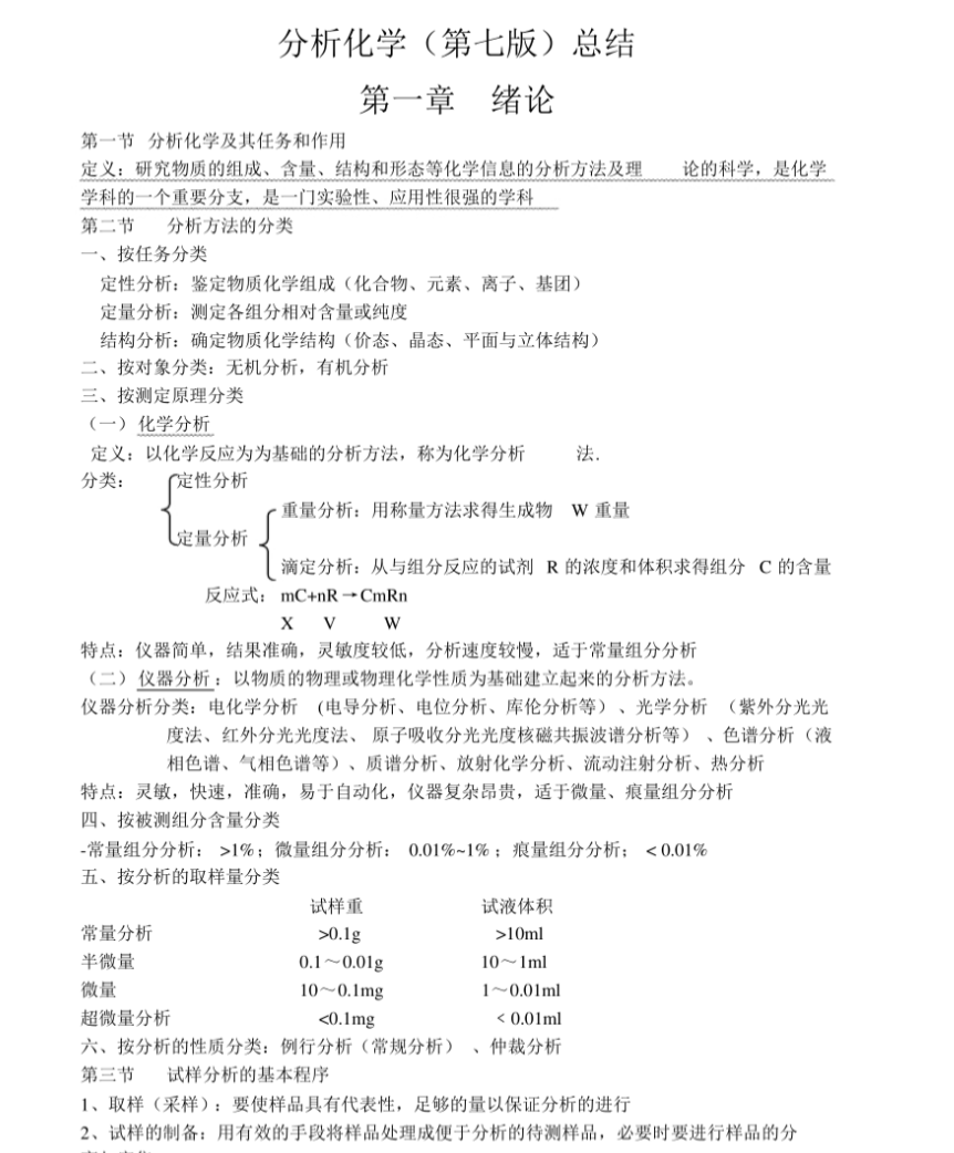 首先,深耕第七版教材,筑牢核心体系。聚焦三大重点:一是吃透基础与新增内容,精准掌握化学分析(四大滴定、重量分析)的原理、计算逻辑,以及仪器分析中新增的检测技术、方法优化要点,牢记教材明确的公式推导、反应条件及适用场景,建立“分析方法-原理依据-版本更新点”的对应认知;二是突出版本重点,第七版强化了仪器分析的实操性与数据精准度要求,需重点攻克滴定分析计算规范、新型仪器检测原理及应用;三是梳理模块关联,以“理论基础-方法应用-实验实操”为主线,衔接误差分析与数据处理的更新表述,搭建适配版本的闭环知识框架。