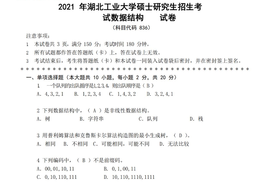 备考湖北工业大学《836数据结构》需紧扣院校考纲,立足“教材筑基、算法落地、真题赋能”的核心逻辑,精准匹配其侧重基础应用与算法实现的命题特点。核心备考资料优先锁定院校指定教材,推荐严蔚敏《数据结构(C语言版)》,搭配配套习题集及王道/天勤《数据结构高分笔记》,辅以近10年真题,明确线性表、栈与队列、树与二叉树等核心考察模块,避免复习偏离重点。