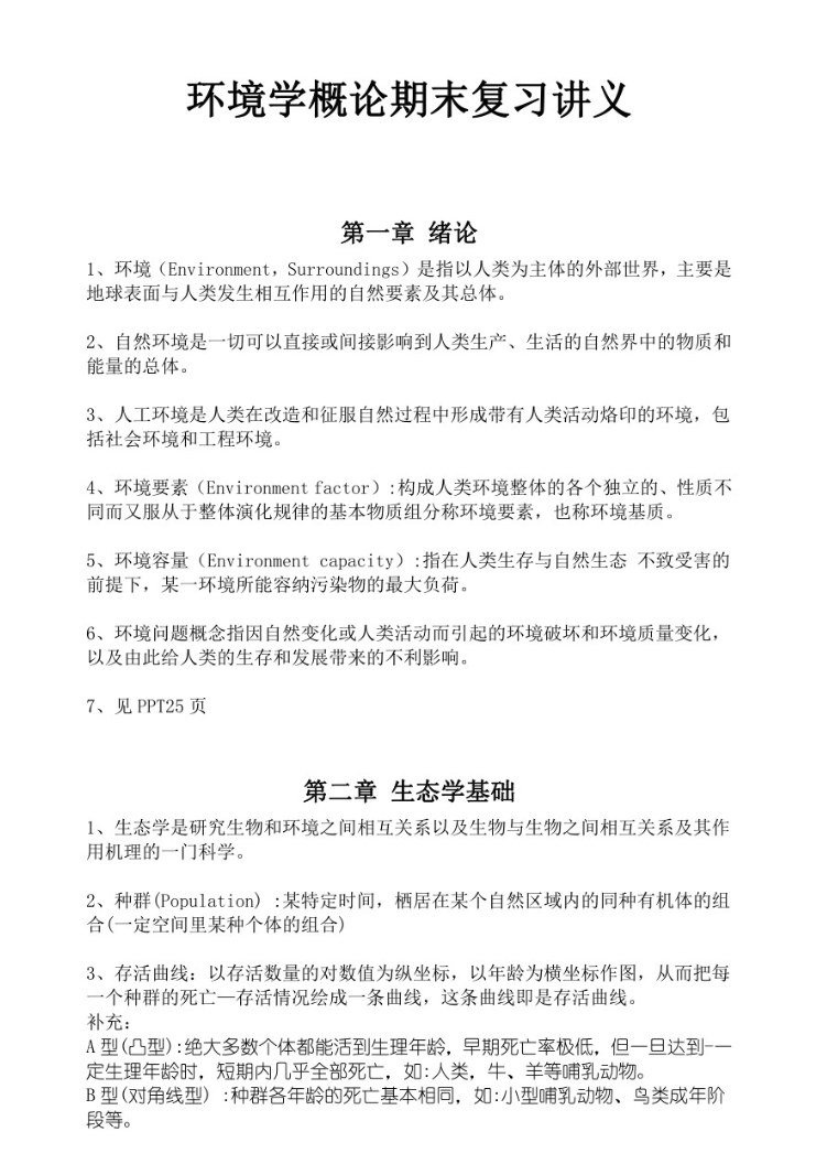 环境保护与可持续发展途径:掌握从 技术、工程、管理、法律、经济、教育、伦理 等多维度应对环境问题的总体思路。深刻理解 可持续发展 的内涵、原则、三大支柱(经济、社会、环境)及实施路径。
