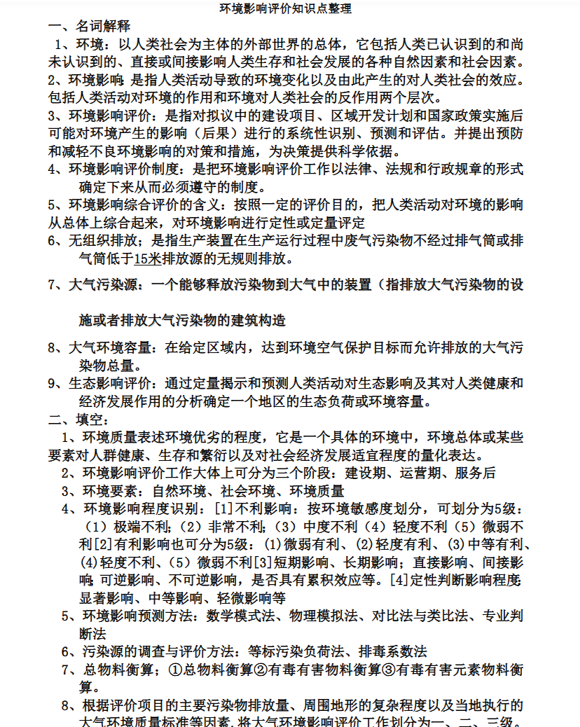 环境影响预测与评价:掌握 大气、水、噪声 影响的常用预测模型(如高斯扩散、完全混合衰减)的基本思想、适用条件及结果解读。了解 生态、风险、社会影响 评价要点。