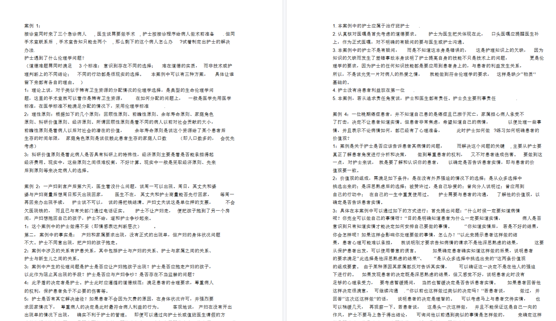 伦理理论基础(分析工具):必须吃透护理伦理的 四大基本原则:尊重自主原则、不伤害原则、有利原则、公正原则。理解每个原则的内涵、外延及可能的冲突(如患者自主权与医疗父权主义的冲突)。