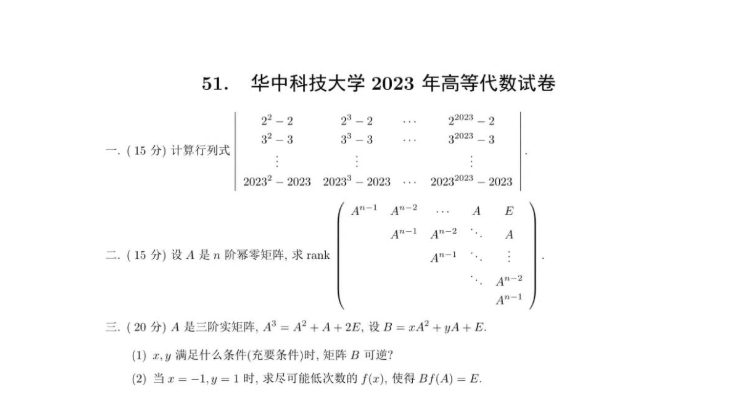 强化阶段聚焦模块攻坚与真题精研。按科目分专项突破高频题型:数学分析重点训练极限计算、积分求解与证明、级数敛散性判断、综合证明题;高等代数侧重矩阵运算、线性方程组通解求解、特征值与特征向量计算、二次型标准化、线性空间证明等题型。系统梳理真题,总结命题规律——华科该科目命题紧扣教材核心,难度适中偏上,侧重知识点的综合应用与逻辑推导,较少偏题怪题。通过真题熟悉考察风格,强化跨模块解题能力,针对薄弱模块(如数学分析的级数证明、高等代数的线性空间与线性变换)开展集中练习,提升答题规范性与准确性。