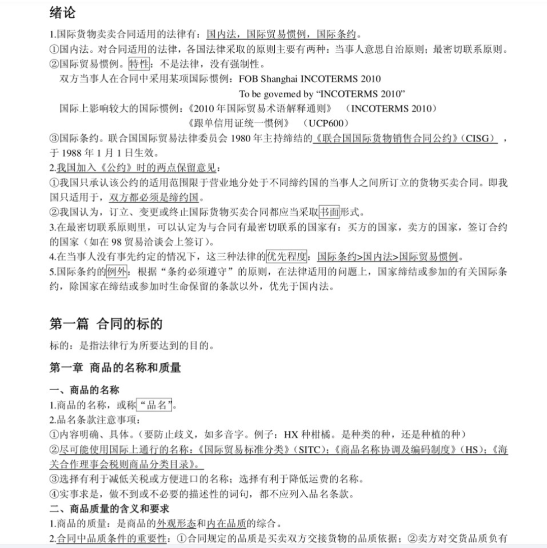 1. 交易基础与合同核心条款:精熟 国际贸易术语通则(Incoterms® 2020),尤其FOB、CIF、CFR等常用术语。掌握 品名质量、数量、包装、价格​ 等条款的拟定。