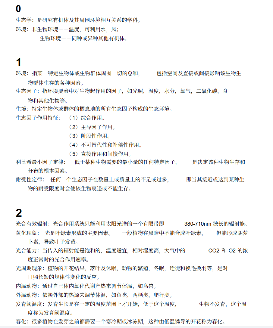 5. 回归核心概念与定律:考前强化记忆 耐受性定律、生态位、初级生产力、生物地化循环、演替、生态系统服务​ 等核心术语及其内涵。