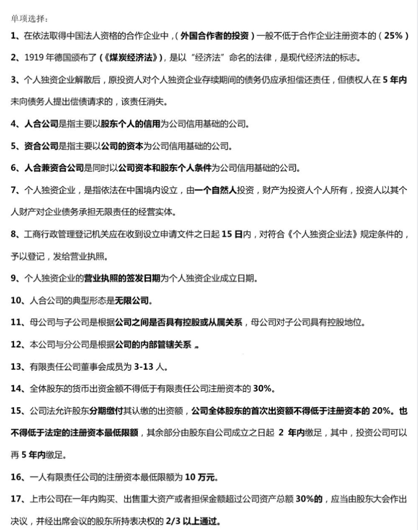 回归核心规范与高频考点:考前集中回顾 公司法、合同法总则、竞争法 等核心领域的 高频考点与核心法条,强化对构成要件的精准记忆。