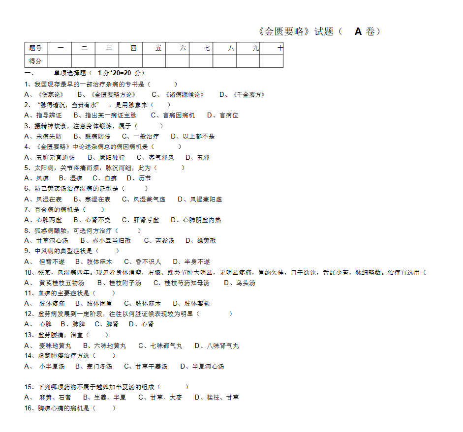 备考《金匮要略》,你需要把握其作为 “临床辨证论治之圭臬”​ 的核心地位:它是张仲景“病脉证治”一体化体系的典范,重在阐述杂病的脏腑经络辨证与方药运用规律。​ 备考关键在于 “构建‘原文-病机-方证’的对应体系,精熟核心条文的辨证要点与方剂配伍,并能运用其思维分析典型病案”。