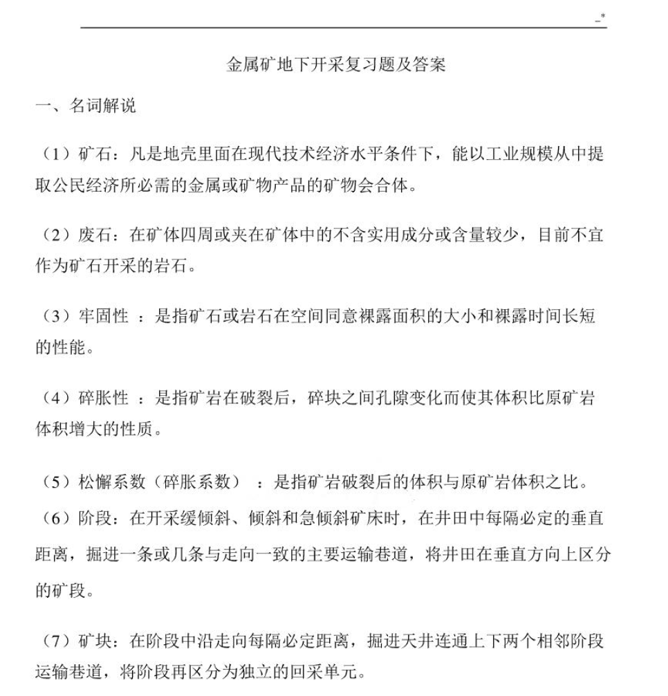 备考《金属矿床地下开采》,你需要把握其 “安全、高效与系统性” 的工程核心:它研究如何根据地压、通风、提升等复杂约束,系统设计与组织从矿块采准到矿石运出的完整工艺流程,是一门高度融合理论、设计与实践的工程学科。 备考关键在于 “构建‘矿床模型-开采系统-工艺设计’的知识闭环,精通主要采矿方法的适用条件与采准切割布置,并能进行初步的开拓系统选择与生产能力校核”。