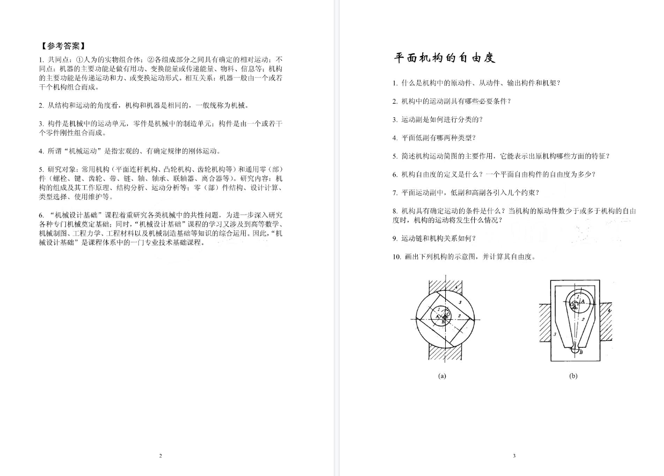 前导基础:必须精通 平面机构自由度计算,能熟练处理复合铰链、局部自由度、虚约束。这是所有机构分析的起点。