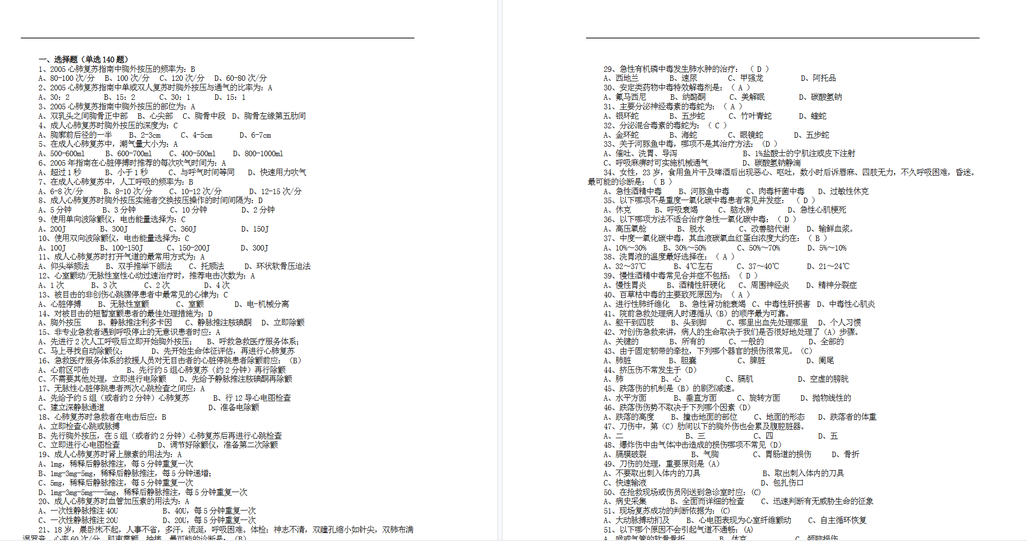 • 核心急救技术与操作:精通 心肺复苏、电除颤、高级气道管理、急救药物应用、胸腔闭式引流、骨折固定​ 等。标准(如按压深度、药物首剂)必须精确记忆。