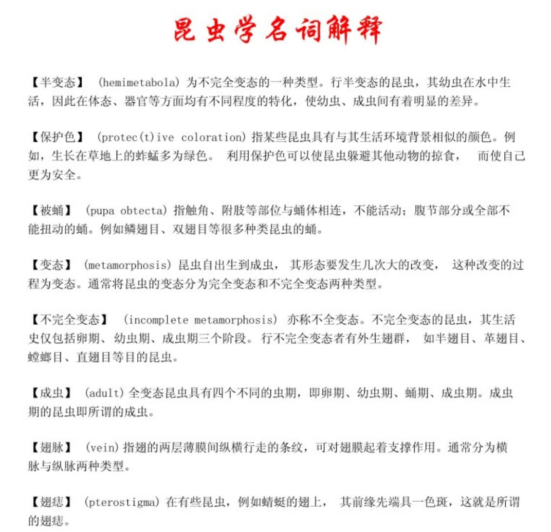 生物学与生态:理解昆虫的变态发育、生殖方式、生活史、行为习性,及其在生态系统中的作用(如传粉、天敌、植食)。