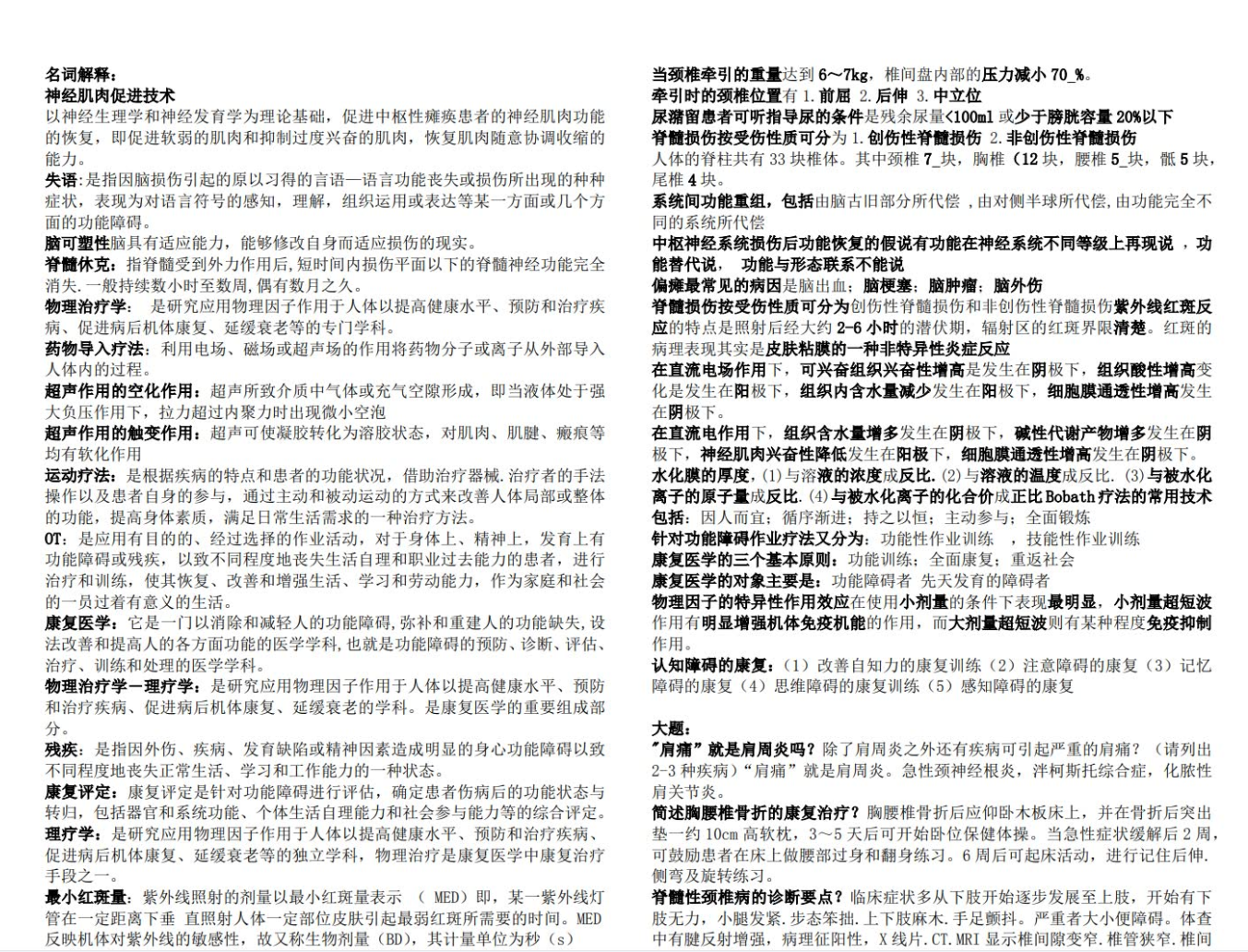 3. 常见病损的临床康复:这是应用重点,需精熟 脑卒中、脊髓损伤、脑外伤、骨关节病/术后、周围神经病损、颈肩腰腿痛、心肺疾病​ 等主要病损的主要功能障碍、康复问题、康复目标、及治疗原则