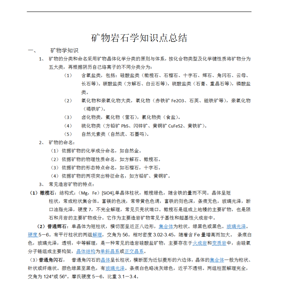 回归最高频核心:考前集中巩固20-30种最主要矿物与岩石的鉴定特征、三大岩类的基本分类方案、典型结构和构造的定义与成因意义、鲍文反应序列。