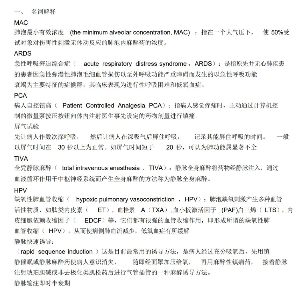 1. 麻醉生理与药理基础:深刻理解麻醉药物(吸入、静脉、肌松、镇痛)的药理与药代,以及手术麻醉对呼吸、循环、神经系统的生理影响。这是所有决策的理论基石。