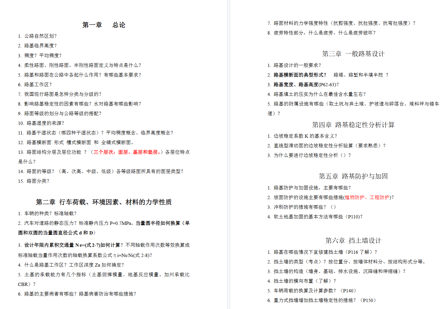 结构设计与原理:掌握路基稳定性(边坡、地基)分析与验算方法、路面结构层组合设计原理与厚度计算(如沥青路面、水泥路面设计理论)。