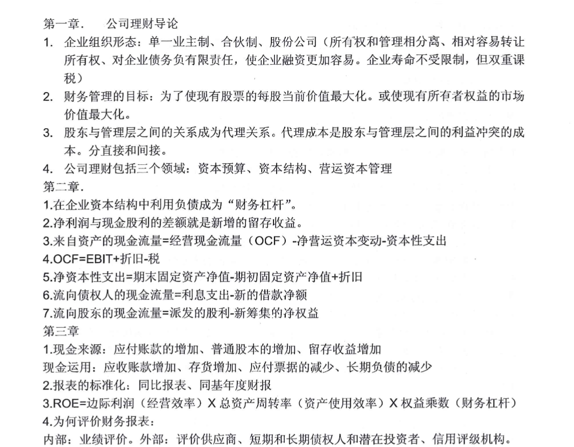 首先,深耕原著框架,夯实理论根基。以教材章节脉络为依托,系统掌握公司理财核心概念,精准吃透第八版重点内容——资本预算方法(NPV、IRR)、资本成本估算、MM定理及衍生理论。重点梳理各章节逻辑关联,牢记书中经典例题的解题思路,结合教材图表辅助理解,搭建“理论逻辑-框架关联-案例适配”的知识体系,避免孤立记忆知识点。