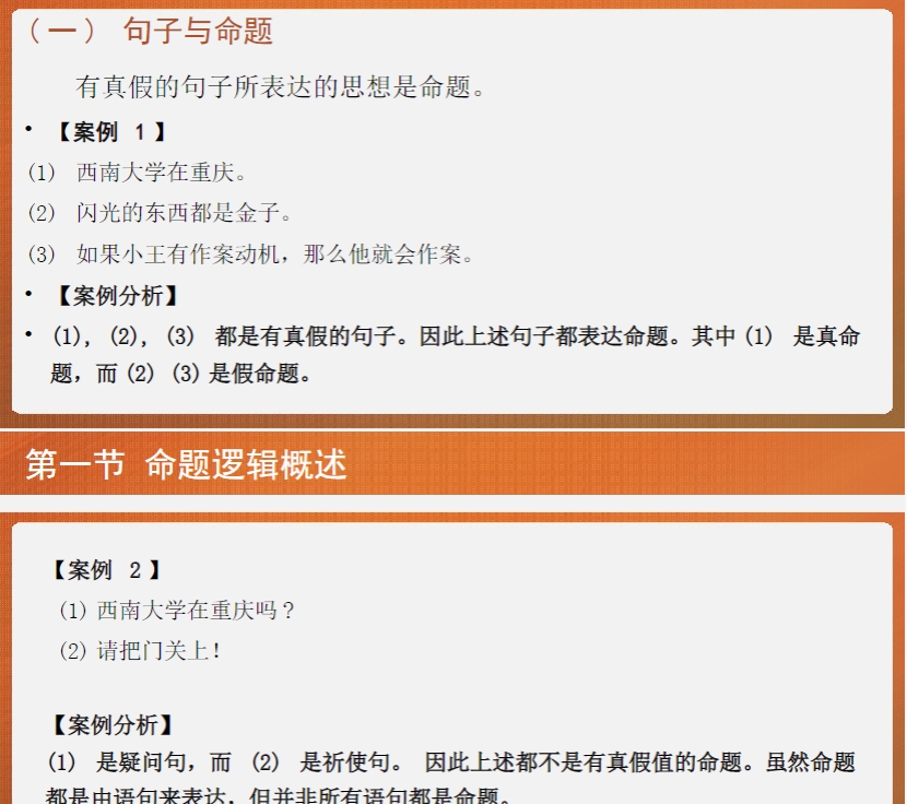 强化习题演练,适配PPT考点导向。优先完成PPT配套例题及章末练习题,这些题目精准对应核心考点;再搭配教材习题、历年真题,按“概念辨析—推理有效性判定—论证分析”分类刷题。整理错题本,针对PPT中强调的易错点(如逻辑谬误辨析、推理规则误用)反复复盘,总结答题思路,比如论证题可沿用PPT中“论点—论据—论证方式”的分析框架提炼要点。