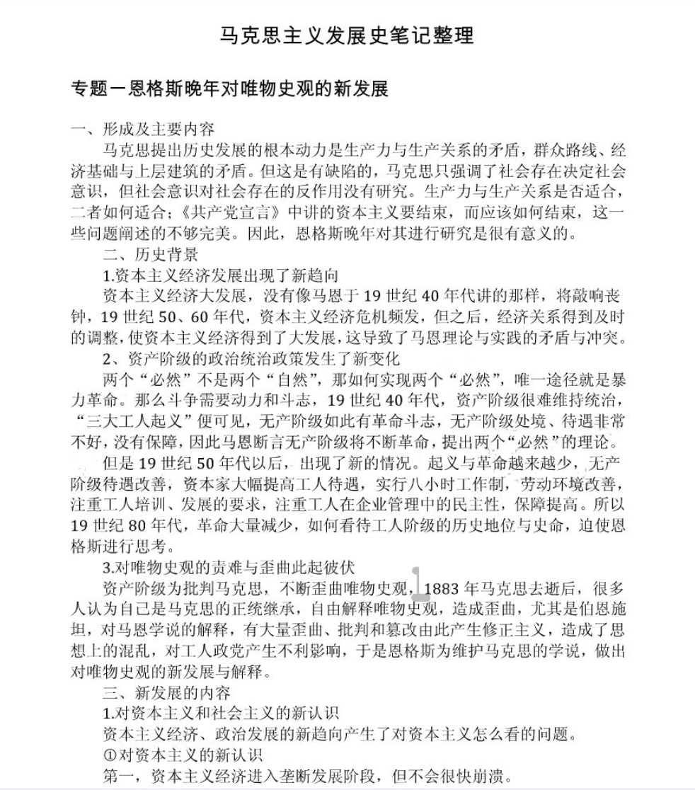 • “提炼核心文献思想精要”:针对《共产党宣言》《资本论》《国家与革命》等里程碑式著作,归纳其写作背景、核心论点、历史地位,并与前后理论发展建立联系。