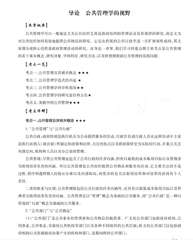 首先,深耕教材框架,夯实基础认知。以教材章节为脉络,系统掌握孟蕾对公共管理定义、学科属性及研究方法的界定,精准吃透原著中“公共组织的结构与运行机制”“公共政策的制定、执行与评估”等核心观点。重点梳理基础理论、组织、政策、基层治理四大模块的内在关联,牢记原著对公共服务、公共监督等基础概念的阐释,搭建“基础概念-核心体系-应用场景”的专属知识框架。