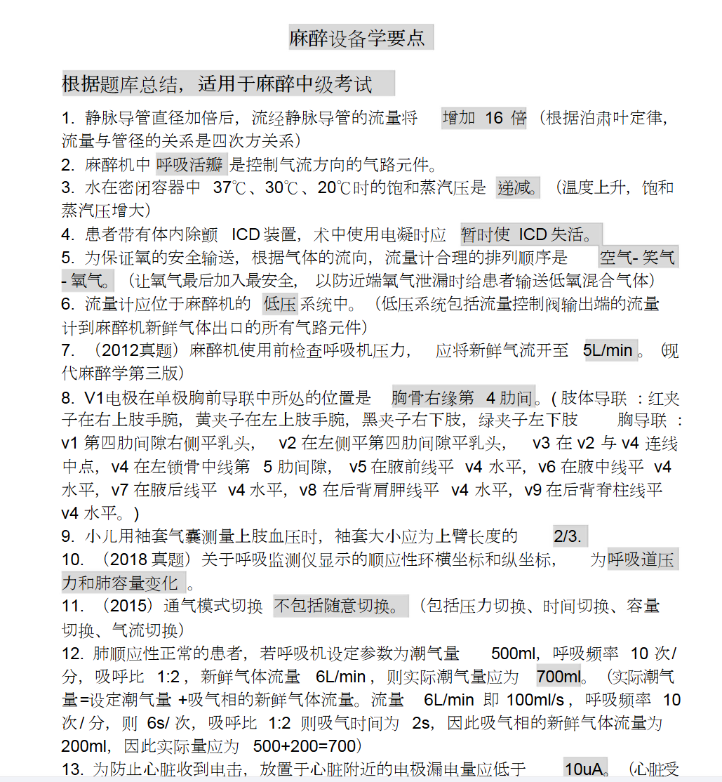 • “对比核心设备的异同”:列表对比不同类型蒸发器、不同麻醉回路、不同监测技术的原理、特点与适用场景,强化理解和记忆。