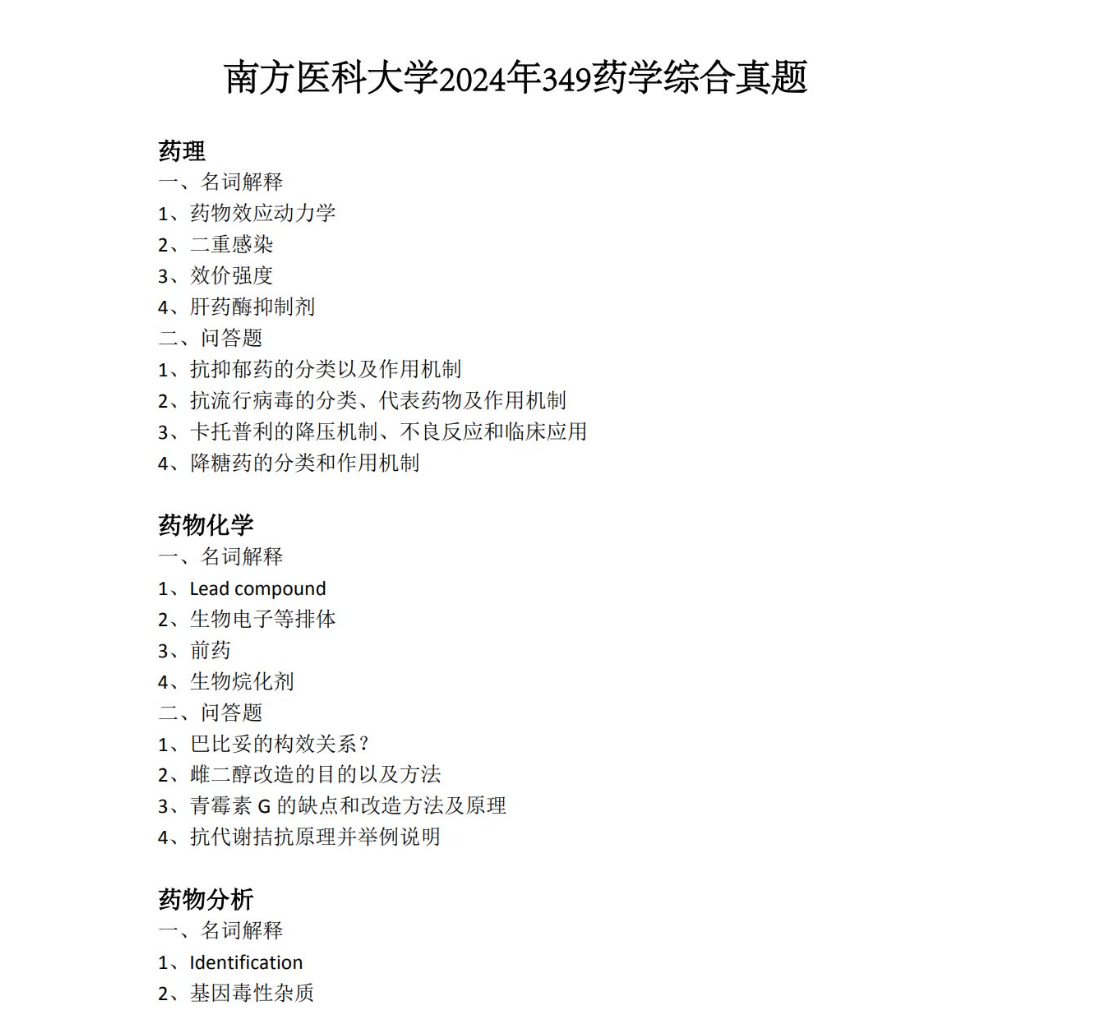 备考南方医科大学《349药学综合》,核心在于紧扣医学类院校命题导向,夯实药学核心理论、强化临床应用关联、聚焦真题演练,兼顾知识系统性与实践适配性。以下是原创针对性备考建议: