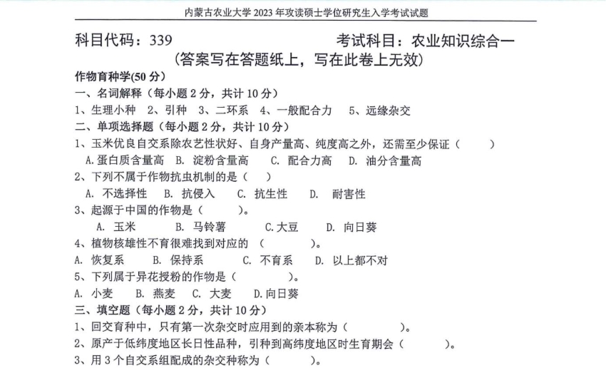 强化阶段聚焦模块攻坚与真题精研。按学科分专项突破高频题型,重点训练植物形态结构辨析、生理机制阐述、农业生态问题分析及调控方案设计等核心题型。系统梳理真题,总结命题规律——内农大339命题紧密结合内蒙古地区农业生产实际,侧重考察干旱、寒冷等逆境下的植物生理响应与生态调控策略,题型涵盖名词解释、简答题、论述题及案例分析题。通过真题熟悉考察风格,规范答题逻辑,强化理论与实践结合的分析能力,针对薄弱模块(如逆境生理、农业生态调控)开展专项练习。