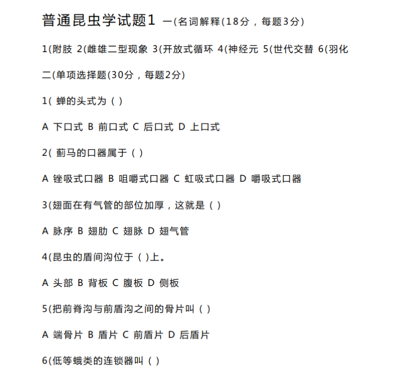 第一,以“体躯构造”为原点重构知识体系。 绝大多数考生按昆虫形态学、生物学、昆虫分类、昆虫生态的章节顺序死守,这是学科分工的逻辑,不是昆虫设计的逻辑。高分考生的知识库是按“昆虫身体是一套作战系统”重组的:外骨骼是盔甲,口器是工具,触角是雷达,复眼是光学传感器,翅是飞行器,足是多功能作业平台,腹部是后勤与兵工厂。