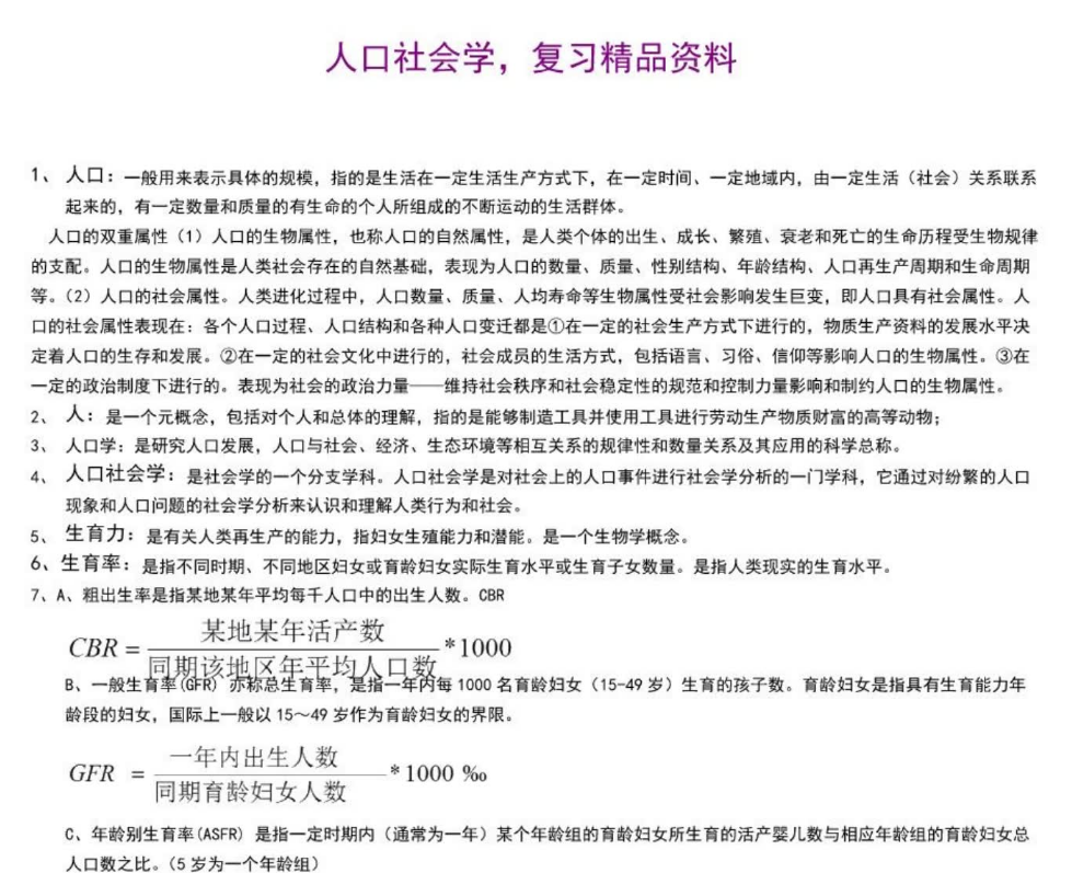 备考《人口社会学》,最致命的误区是把它当成“人口学”与“社会学”的机械拼盘——上午背生育率、死亡率、迁移率的计算公式,下午背社会化、分层、社会变迁的理论,结果遇到“如何解释我国出生性别比长期偏高”这类问题时,只会罗列“B超技术普及、生育政策限制、养儿防老观念”几条孤立原因,却看不见人口现象从来都不是单纯的数量问题,而是特定社会结构、文化观念、制度安排共同塑造的结果。这门课的本质不是两门学科的加法,而是用社会学的想象力,去解剖人口行为背后的社会逻辑